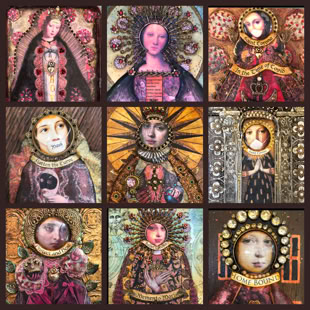 Visit my Etsy shop to view my smaller artworks, jewelry, stencils, and collage sheets.