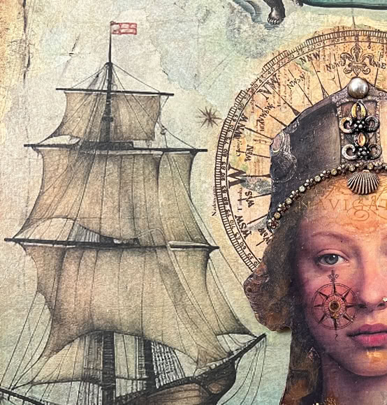 During the Covid pandemic, my work evolved in a more introspective and expressive direction. A desire for deeper self-exploration led to a body of work examining the female psyche, aging, politics, and dreams, often with a surrealist sensibility. These explorations reconnected me with my longstanding love of painting and collage, expanding my practice to include large-scale figurative polymer clay works combined with layered, original collage elements. I have also begun integrating AI-assisted imagery—often inspired by Renaissance aesthetics—into my process. This fusion reflects both continuity with my earlier explorations and an ongoing commitment to innovation. By uniting materials and imagery that reference different historical periods, traditions, and cultural influences, I aim to create works that feel simultaneously timeless and contemporary.